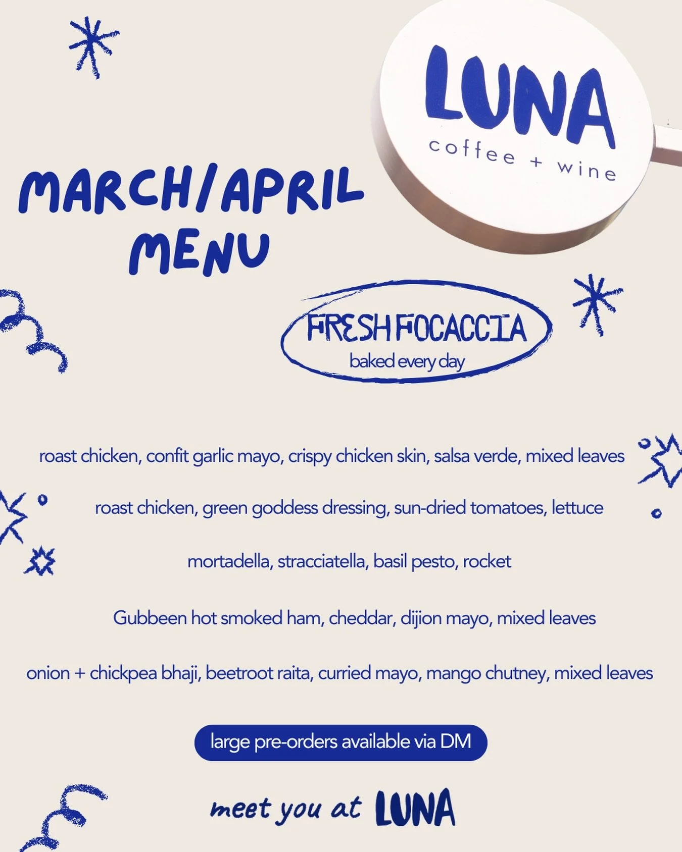 LUNA is a speciality coffee shop, offering house baked pastries, artisan sandwiches and healthy salads.